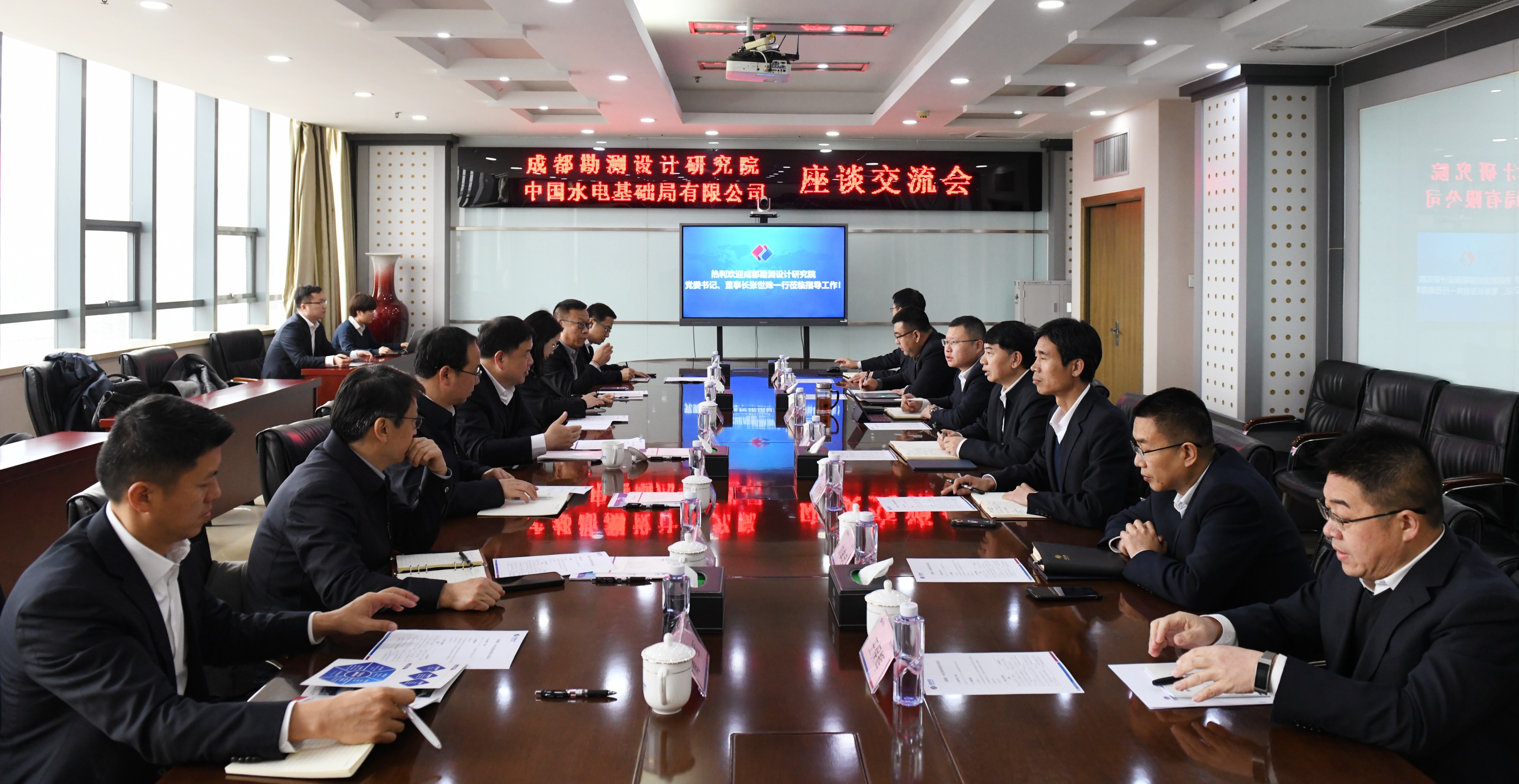 3月13日,公司党委书记、董事长杨铭钦在天津武清与成都院党委书记、董事长张世殊进行工作座谈,双方就进一步深化合作、共谋发展进行深入交流,公司副总经理杨振甲,副总经理、总工程师江志安参加。 张世殊对公司在专业领域形成的特色优势和技术表示赞赏。他指出,公司专业能力突出,形成了难以替代的核心竞争力。希望双方在四个方面深化合作:一是将科技创新摆在突出位置,做好科技立项到成果报奖的全链条工作,以科技创新驱动发展;二是共同开拓国内国际市场,打造差异化竞争优势;三是抓好中标项目履约,以优质履约树立后续合作标杆;四是深化重大项目科研合作,推动工作走深走实。 杨铭钦对张世殊一行到访表示欢迎和感谢。他强调,公司长期专注于地基处理主业,肩负着为行业和国家解决重大技术难题的责任,在科技创新方面有深厚积累,近年来引进百余名硕博高端人才,为双方合作提供坚实的智力支持。他指出,双方互补空间巨大,成都院在诸多领域具有领先优势,公司愿发挥专业特长,全力做好配合。期待与成都院在新能源、数智化等更广阔的领域实现技术互补与资源共享。 期间,与会人员参观了公司展厅,共同观看公司企业宣传片,全面了解公司发展历程、核心业务布局与科技创新成果。 成都院有关部门、分公司负责人;公司有关高级管理人员,办公室、工程管理部、国际公司/国际区域事业部相关负责人参加座谈交流。 |